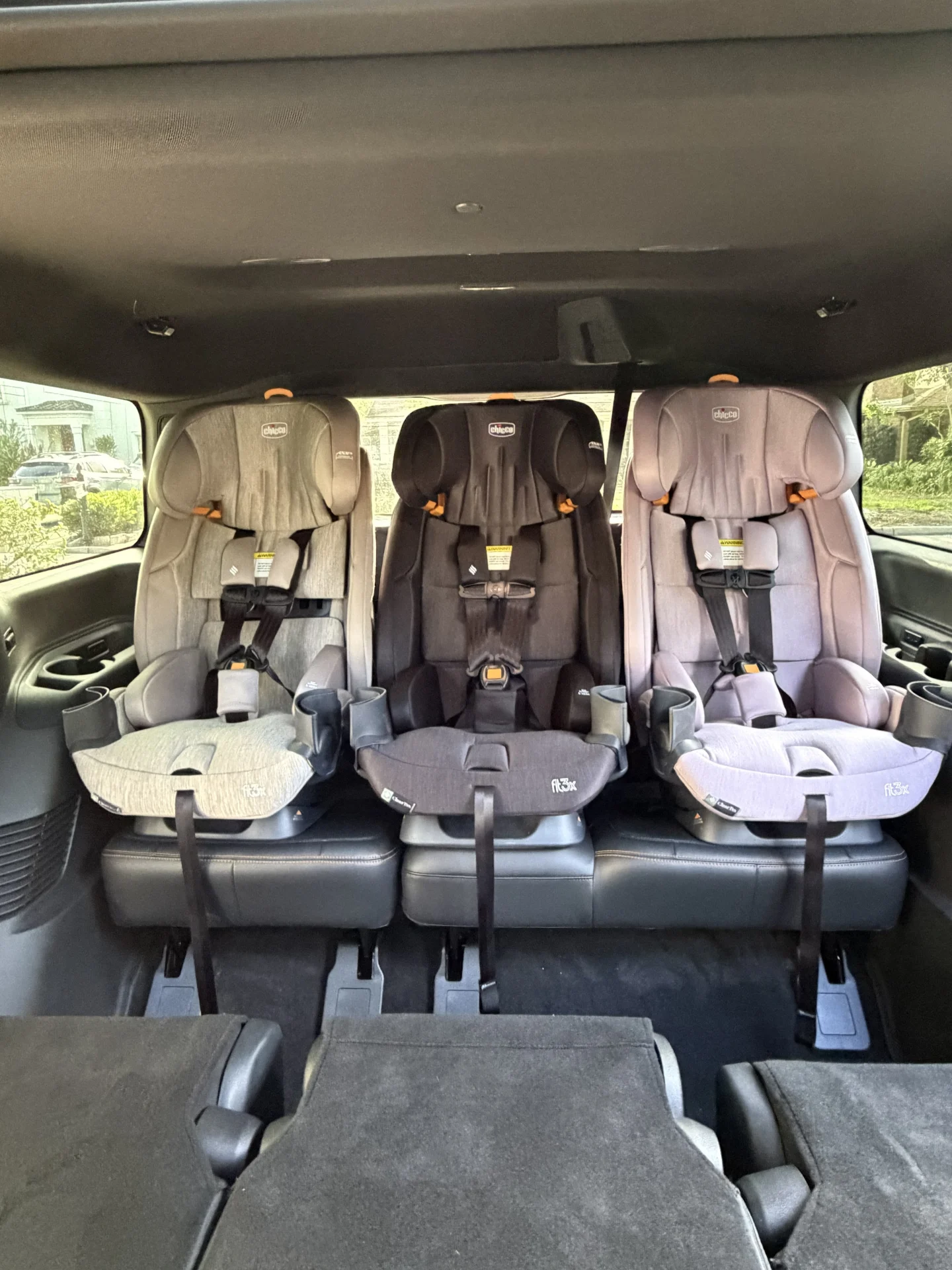 - Families trying to fit 3 car seats across