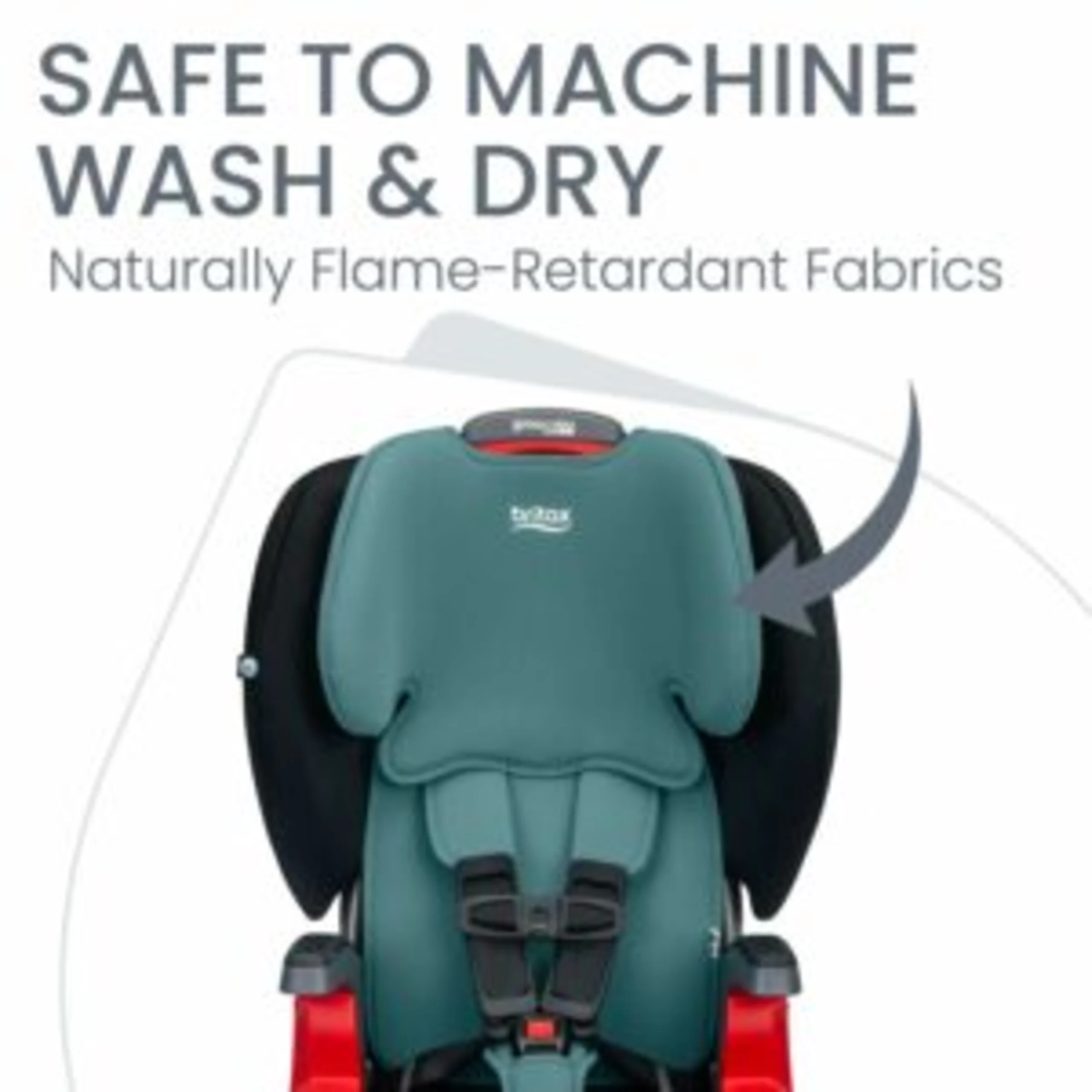 Britax is moving over to all flame retardant-free fabrics. But until the other fabric options are out of stock, make sure to choose a version with SafeWash fabric if this is important to you. Cover removal: The removable cover is washer-and-dryer friendly for easy cleanup!