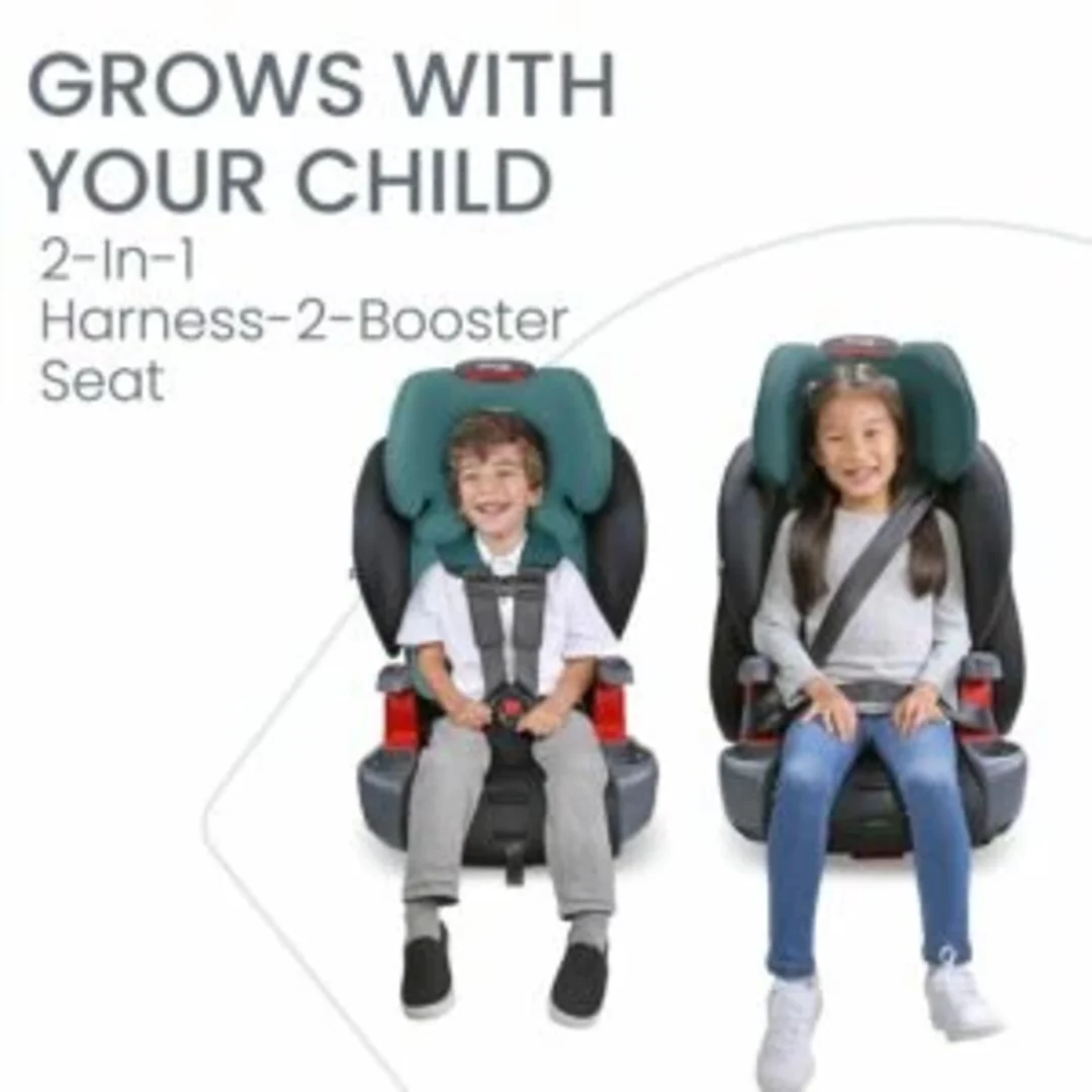 A 2-in-1 car seat that can be used forward-facing and in high-back booster mode