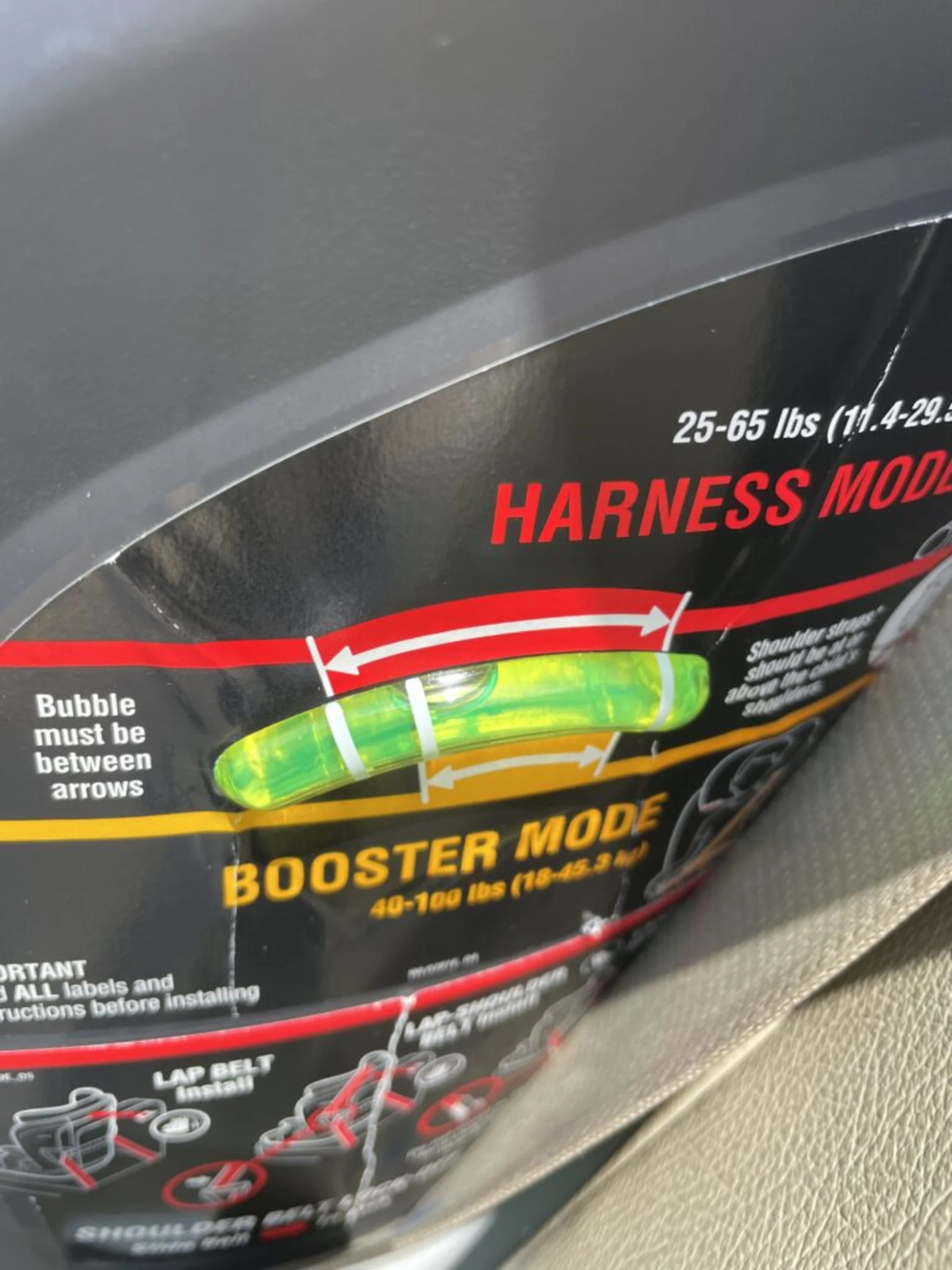 Has recline bubble for harness and booster modes
