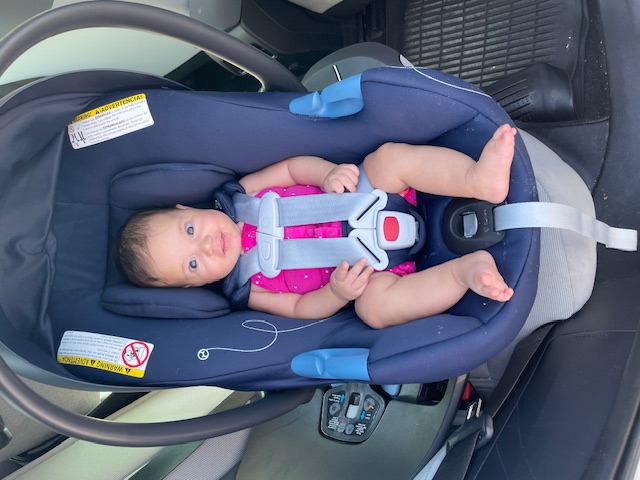 An infant car seat