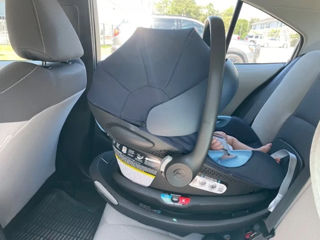 The base of the Cybex Aton G Swivel has an anti-rebound bar (ARB), an added safety feature that can reduce the secondary movement of the car seat, called rebound, during a crash. When a crash occurs, the car seat will move forward, towards the front of the vehicle, and rotate downward. And as we all know from high school physics, every action has an equal and opposite reaction — so after that initial movement, the car seat will rebound, or “bounce back” towards the backrest of the vehicle seat. The ARB minimizes this bounce-back effect, helping limit the car seat movement and your child inside it! ARBs may also limit the side-to-side rotation of the car seat in a side-impact collision. Overall, they’re a great feature to have on a rear-facing car seat!