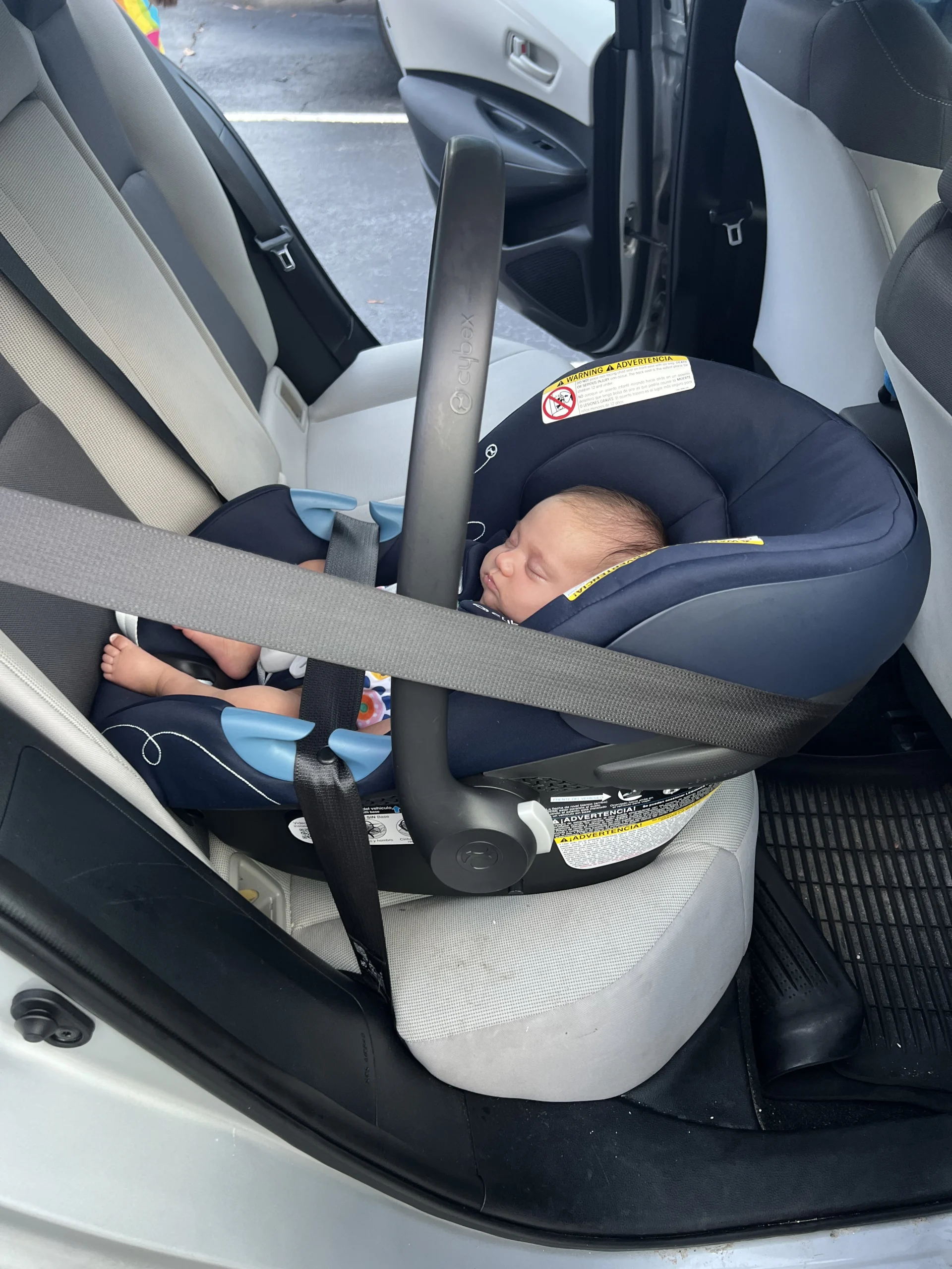 The base of the Cybex Aton G Swivel has an anti-rebound bar (ARB), an added safety feature that can reduce the secondary movement of the car seat, called rebound, during a crash. When a crash occurs, the car seat will move forward, towards the front of the vehicle, and rotate downward. And as we all know from high school physics, every action has an equal and opposite reaction — so after that initial movement, the car seat will rebound, or “bounce back” towards the backrest of the vehicle seat. The ARB minimizes this bounce-back effect, helping limit the car seat movement and your child inside it! ARBs may also limit the side-to-side rotation of the car seat in a side-impact collision. Overall, they’re a great feature to have on a rear-facing car seat!
