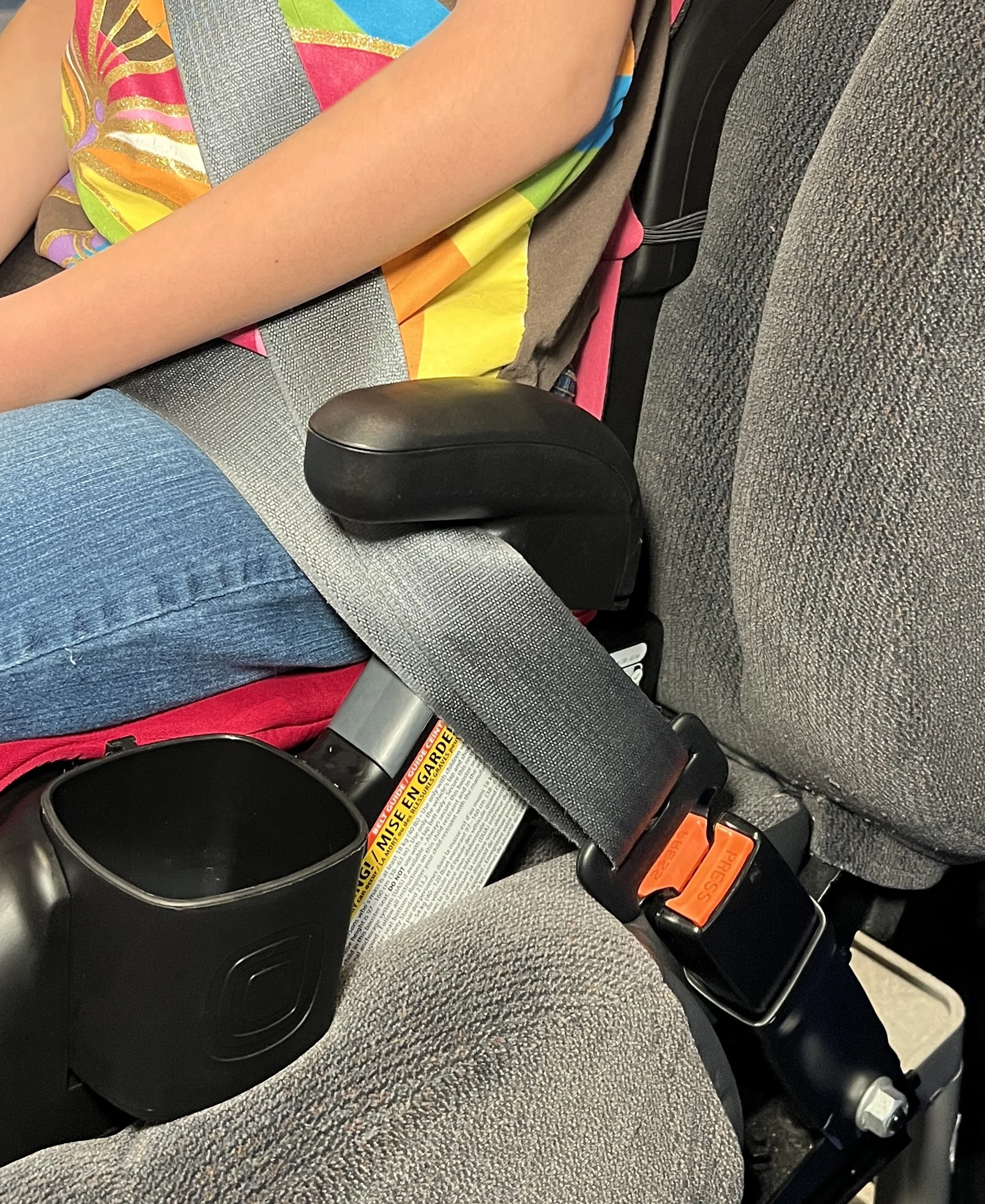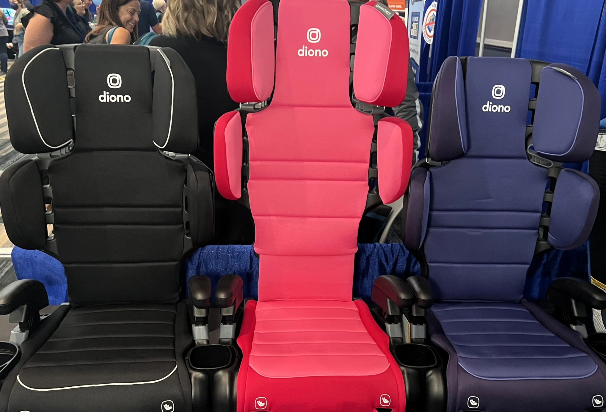The Diono Connect3 R high-back booster comes in a variety of fun colors, breaking away from the typical gray and black options. It's a good choice for families needing three across or dealing with non-removable, forward-tilting headrests. Although it lacks lower anchors, teaching kids to buckle it in helps prevent it from becoming a projectile.