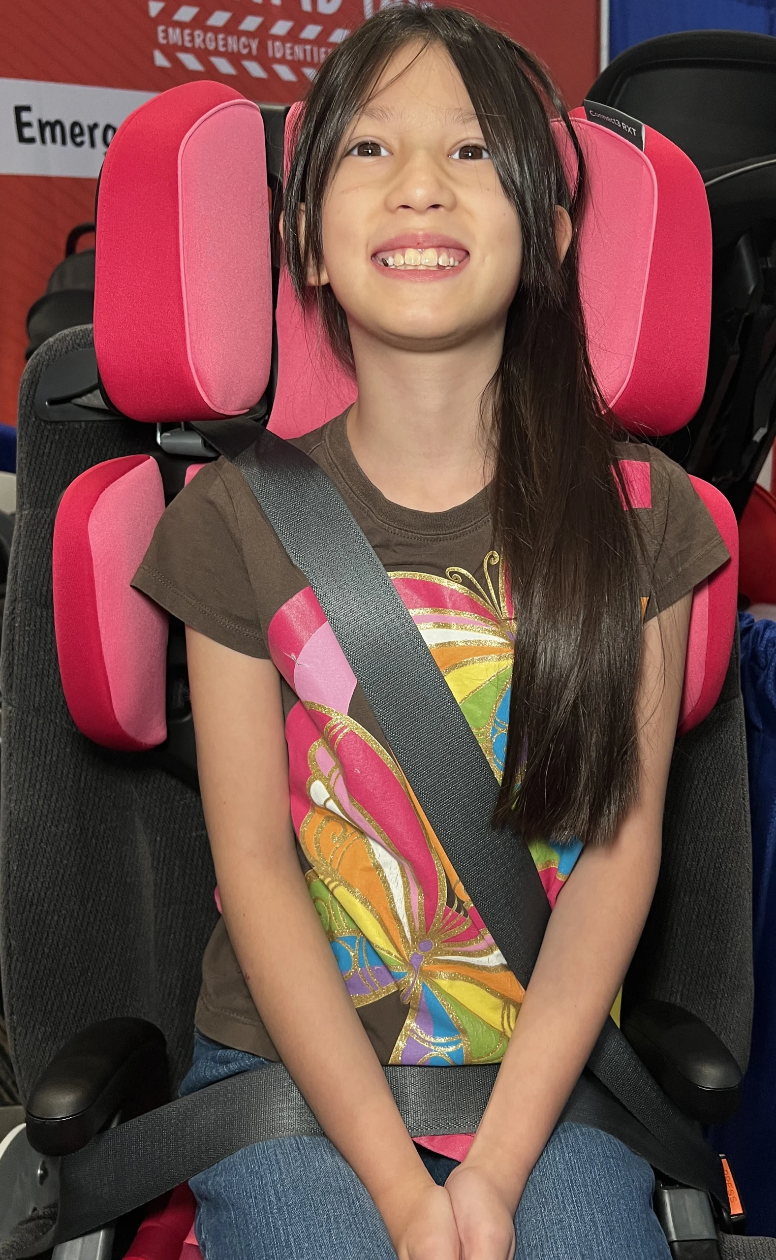 We had an almost 10 year old with us. She was 57 pounds and 53." This booster gave her a great seat belt fit. She found the shoulder belt guide easy-to-use and she thought the booster was comfortable.