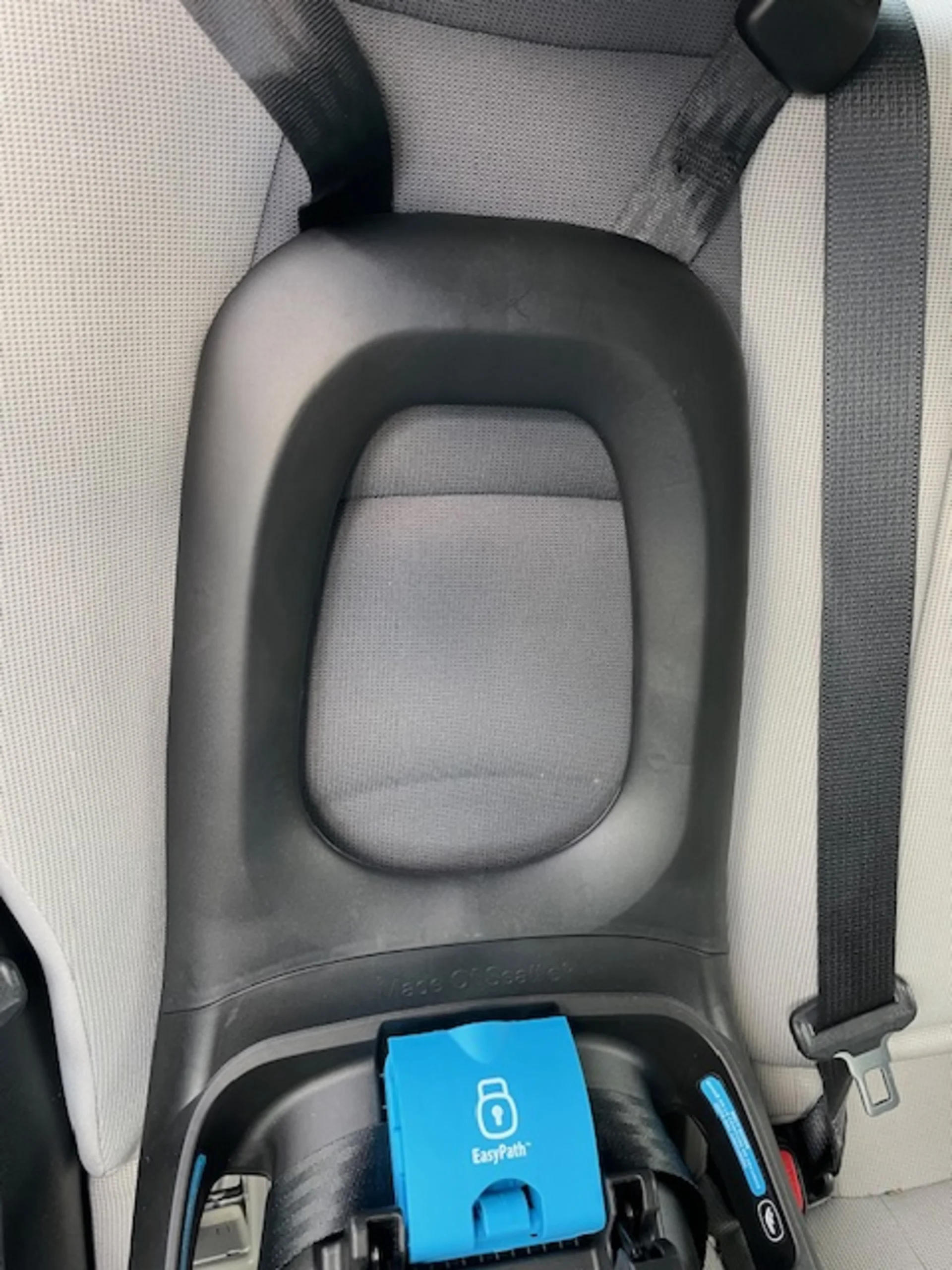 The back of the seat, where the harness is, is covered. This makes changing the harness height more complicated than on most other seats on the market. You have to loosen the harness all the way, take the harness off of the splitter plate in the back, pull the harness through the hole on the front, slide it into the hole you want it into, push it in until it dangles low enough that you can see it, and then attach it to the splitter plate again.