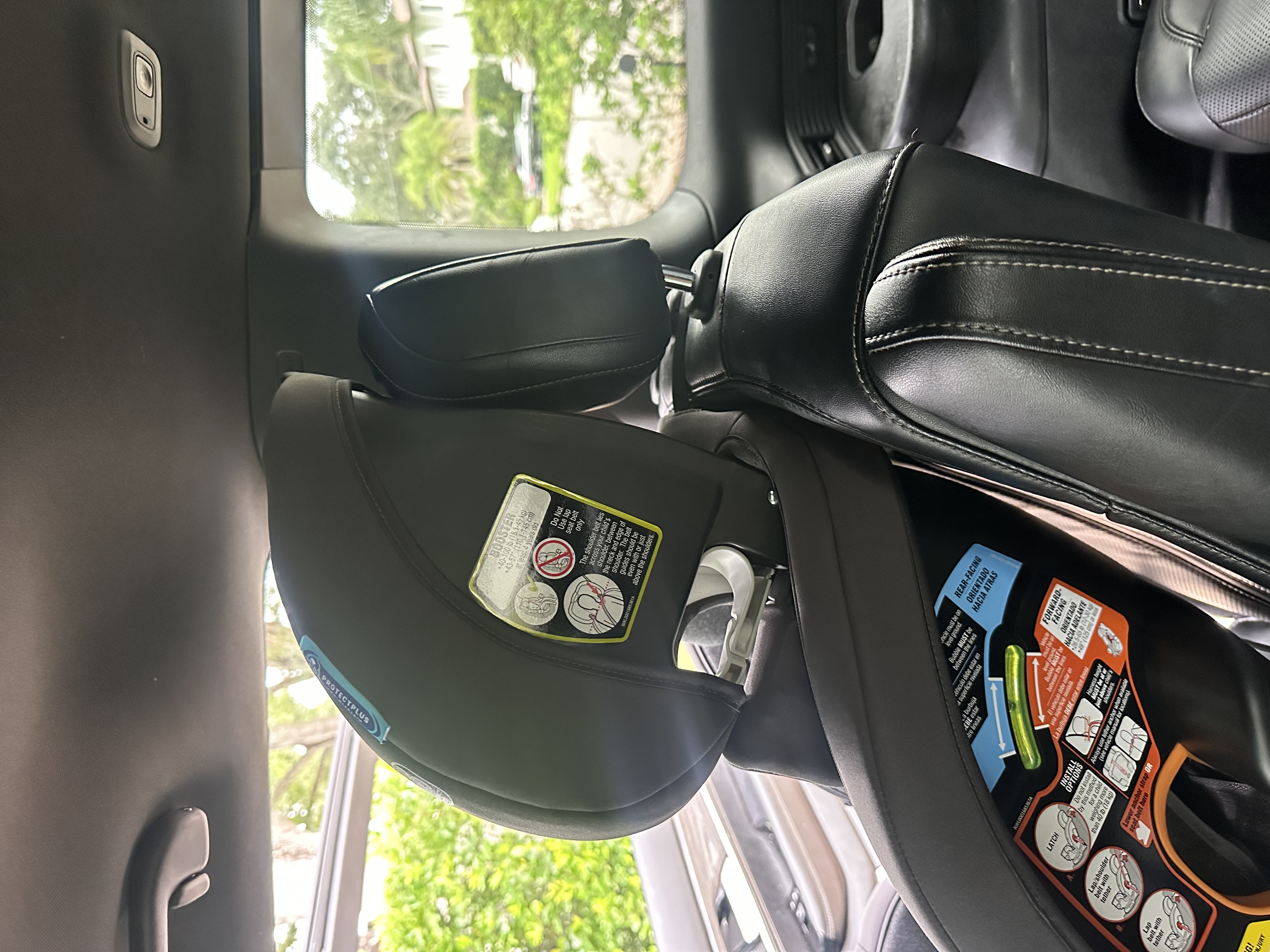 This seat only swivels in rear-facing mode. However, that’s good enough for most people. Once a child is old enough to be forward-facing, they can generally climb into the seat on their own. If you want a swivel seat due to you or your child having a disability, you may be interested in one of the seats that can also swivel in forward-facing mode, such as Chicco Fit360 or Evenflo Revolve Extend.