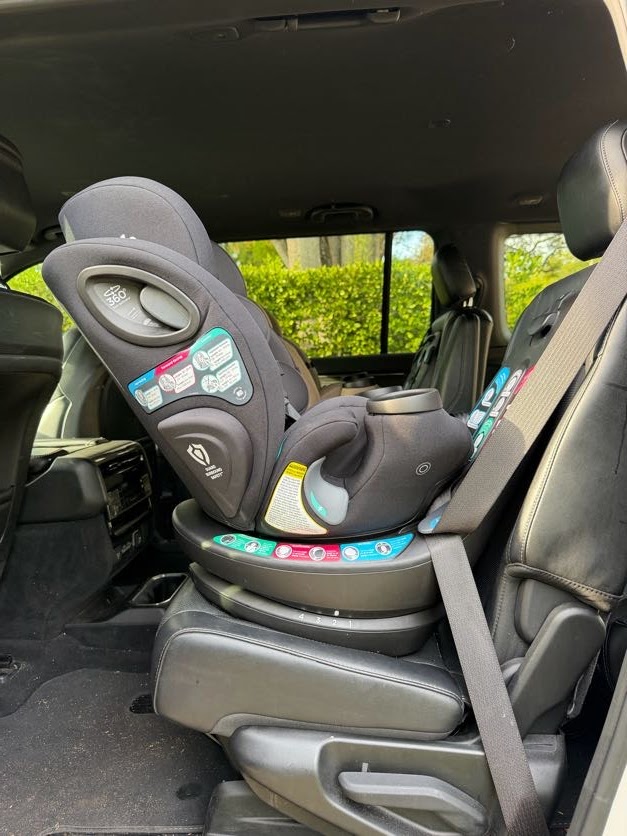 The Joie Pepper Spin SI is a versatile swivel car seat that rotates 360° in rear- and forward-facing modes and 180° in high-back booster mode, making loading and buckling much easier. It includes helpful installation features like a LockTight belt tensioner and seat belt lock-off, along with an anti-rebound bar for added rear-facing safety. The magnetic chest clip is convenient for caregivers while helping prevent toddlers from unbuckling. However, at 19.2" wide, it’s not ideal for 3-across setups, and it cannot be used on airplanes.