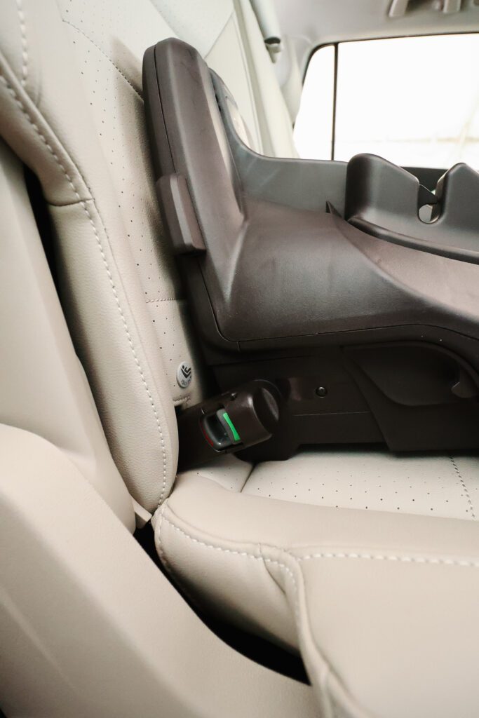 Unlike flexible lower anchors on the end of a strap, these anchors are steel bars that protrude out directly from the steel frame of the car seat and attach to your vehicle’s lower anchor points. This connection style is generally considered a user-friendly install. When done correctly (which is easy to do), it creates an extremely tight connection between the car seat and the vehicle, which is a very good thing in the land of child passenger safety.