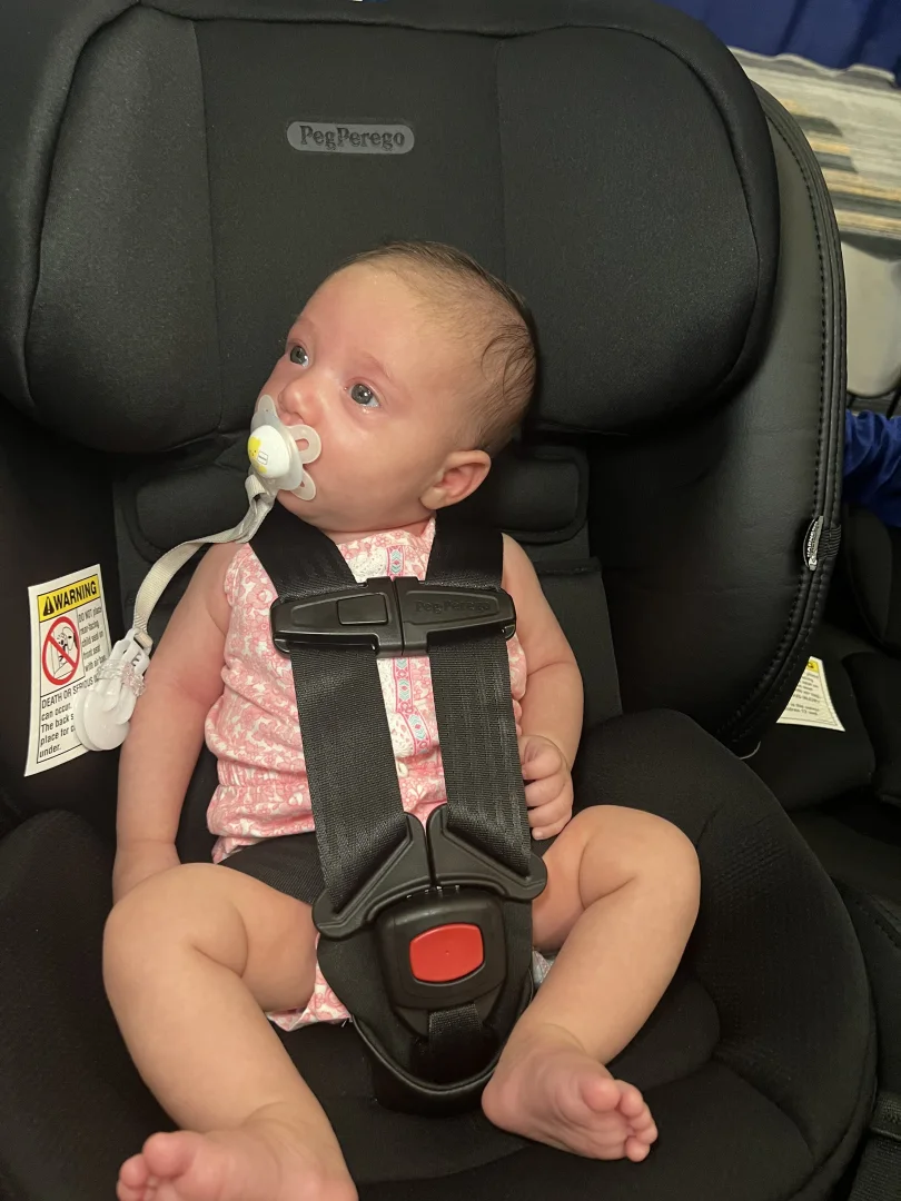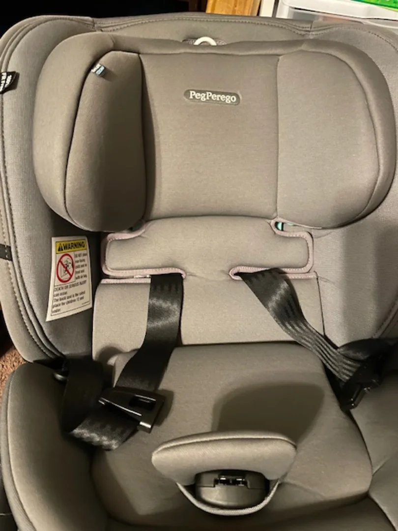 The Peg Perego Primo Viaggio All-in-One car seat's flame-retardant-free fabric and narrow 17-inch width make it a good choice for families who prioritize chemical-free materials, while also needing a seat that can fit three across in certain vehicles. It fits average or larger newborns well and is compact front-to-back.