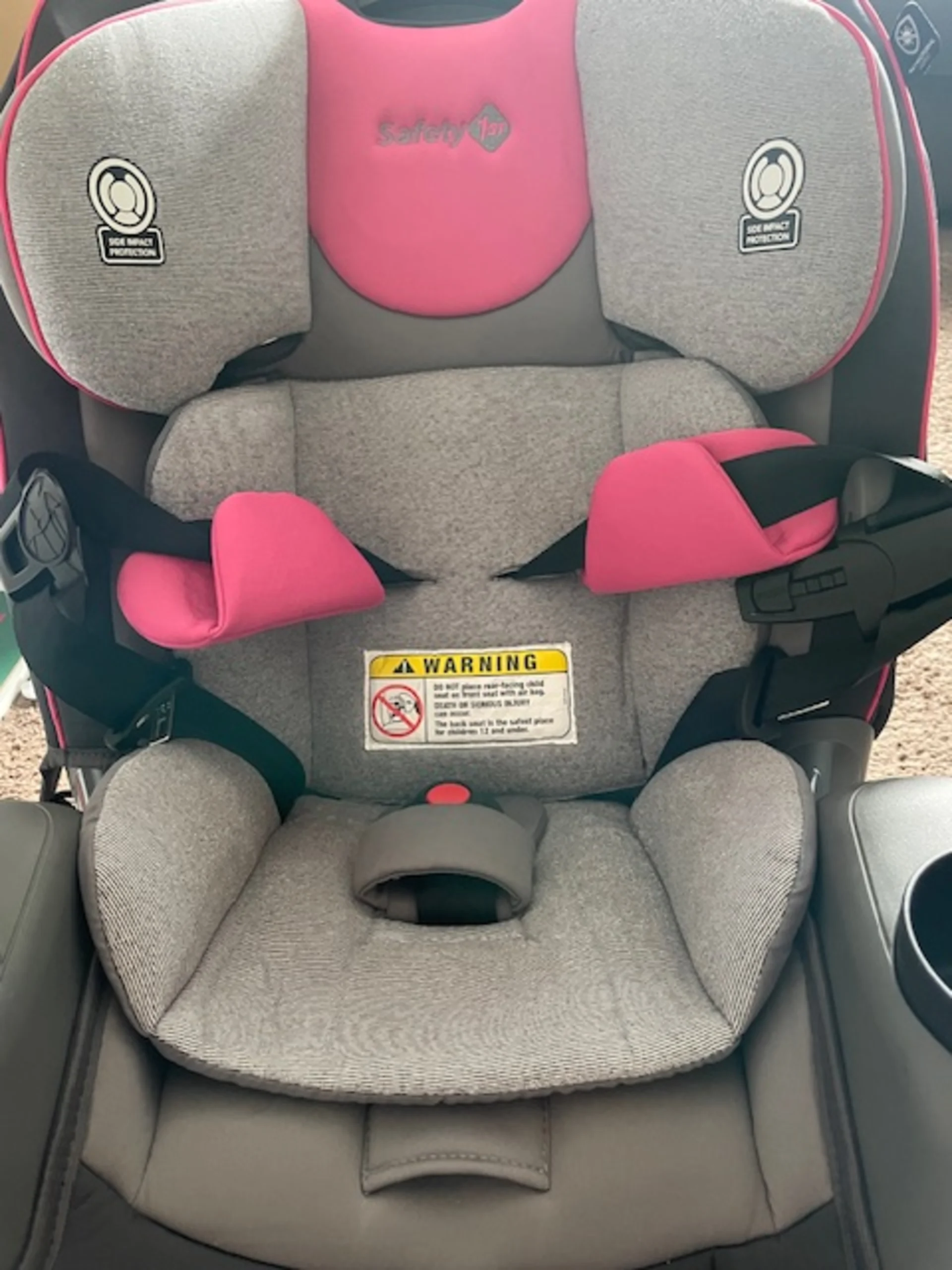 The Safety 1st Crosstown DLX's low harness height of 5.75 inches makes it suitable for most newborns, though adjustments are needed to achieve a proper fit. While compact front-to-back, once a child can sit unassisted, it requires significant space for the newborn recline position. At 18 inches wide, it will not be the best option for three-across configurations. Weighing 19 pounds, this three-in-one convertible car seat is FAA-approved but heavier than some alternatives, making it a less convenient option for frequent travelers.
