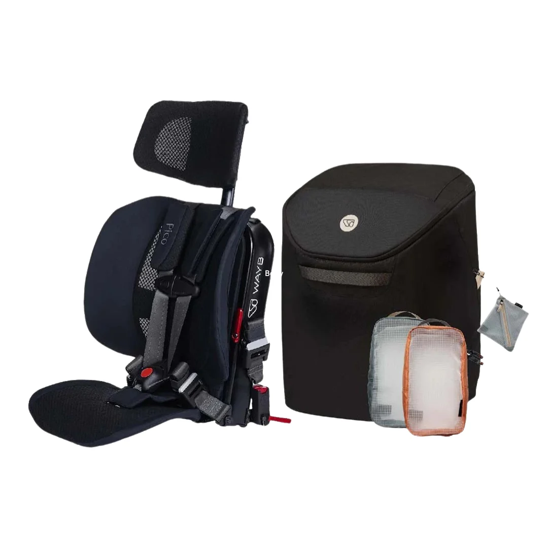 The Wayb Pico is an FAA-approved car seat. This is an excellent option for domestic travel. It folds up and weighs only 8 pounds. If traveling internationally you will need a locking clip in order to do a seat belt installation. Contact the car seat manufacturer for a free locking clip. We have a video here of how to use a locking clip.